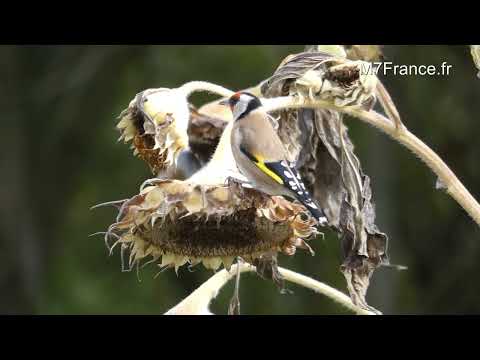 Chardonnerets élégants, Carduelis carduelis France, Ile de France - Octobre, 2023 Les chardonnerets élégants(chardonneret élégant) apprécient des graines de tournesols, ils s'en dévorent... L'hiver sera neigeux(neige) et froid ?, 2023 et 2024